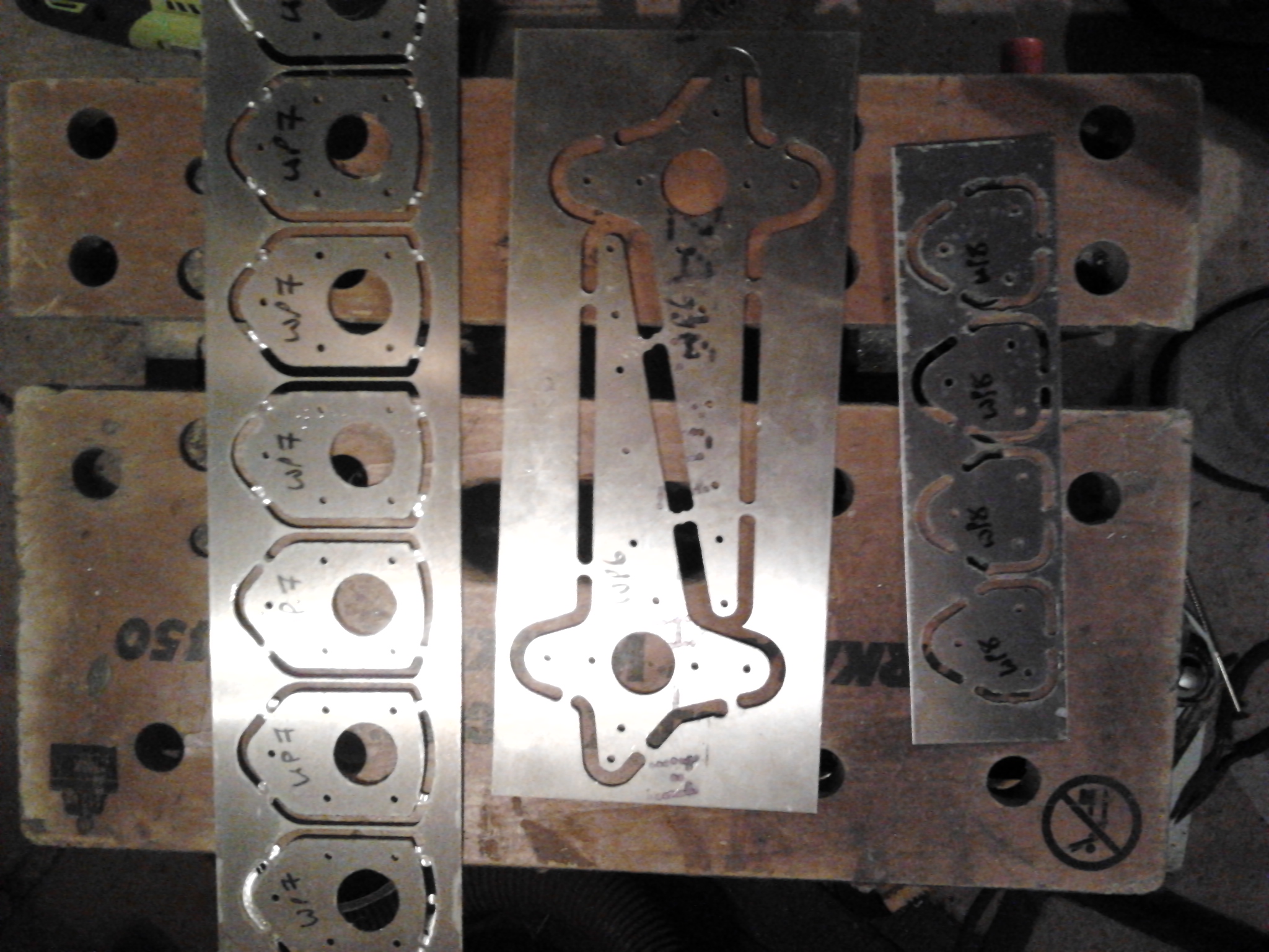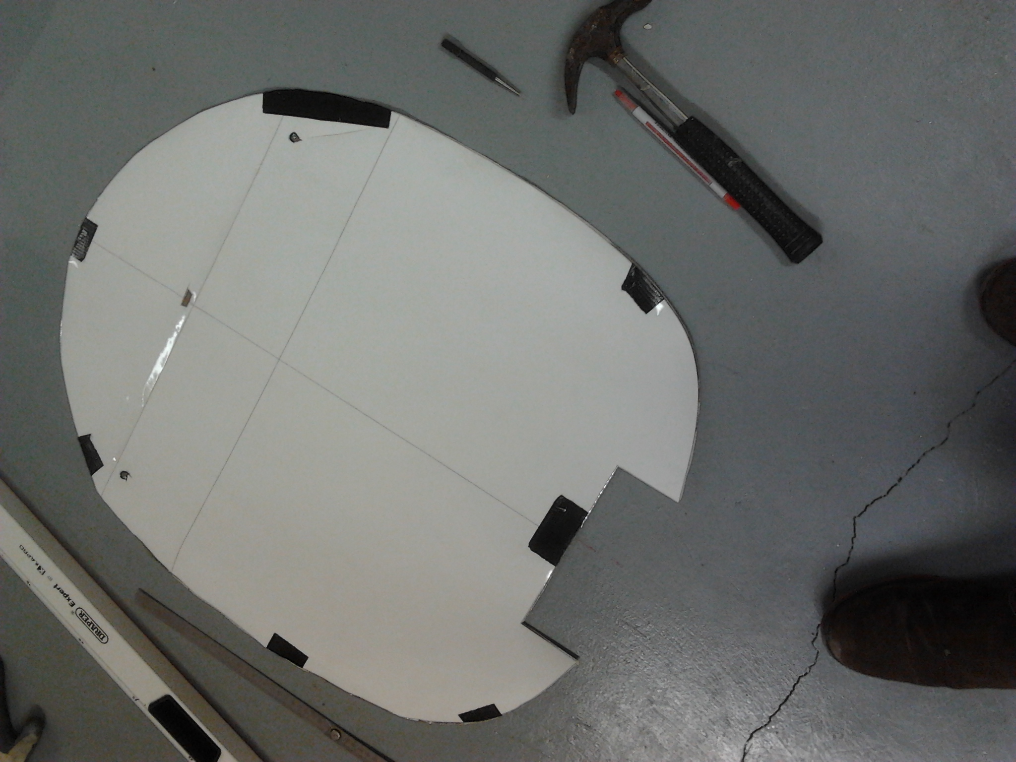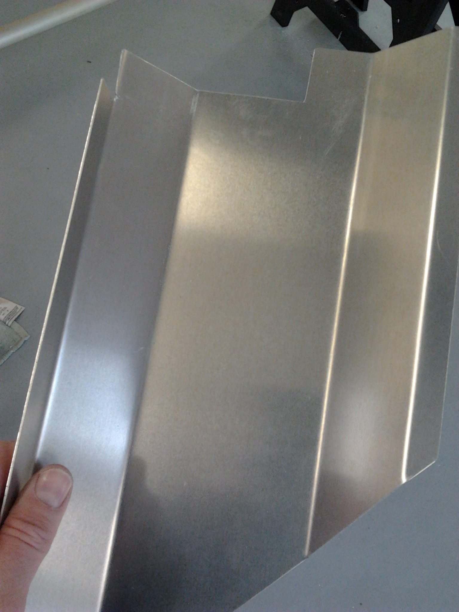 Engine bulkhead is cut from a sheet steel using the provided template…. note the indent duct which is for an add on folded exhaust section.