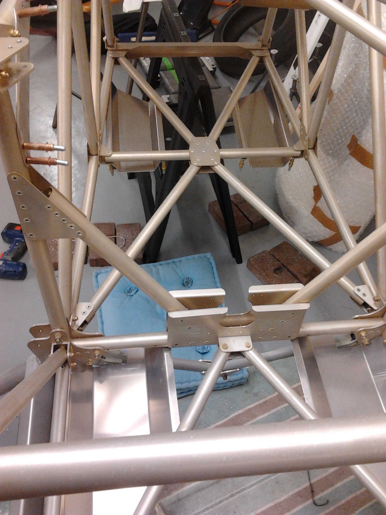 Each pedal is bushed and the rivets pick up the main cross beams of the aircraft. The pedals are provided pre welded but need rubbing down, etch priming and then 3 coats of Hammerite.