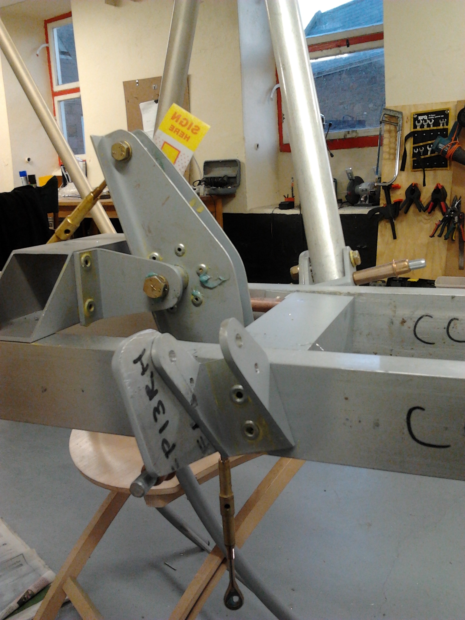 The intermediate horn sits between the seat rails and is positioned to pickup the ‘tail end’ of the elevator interconnecting rod (yet to be completed) that runs through the centre (internal) of the control torque tube.