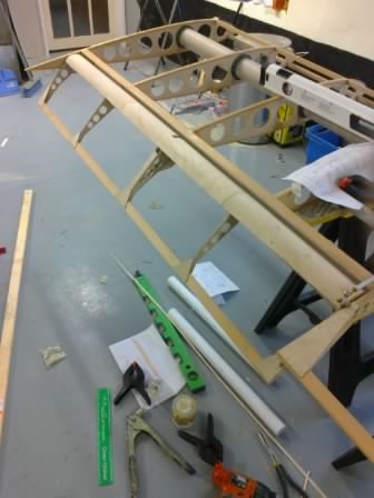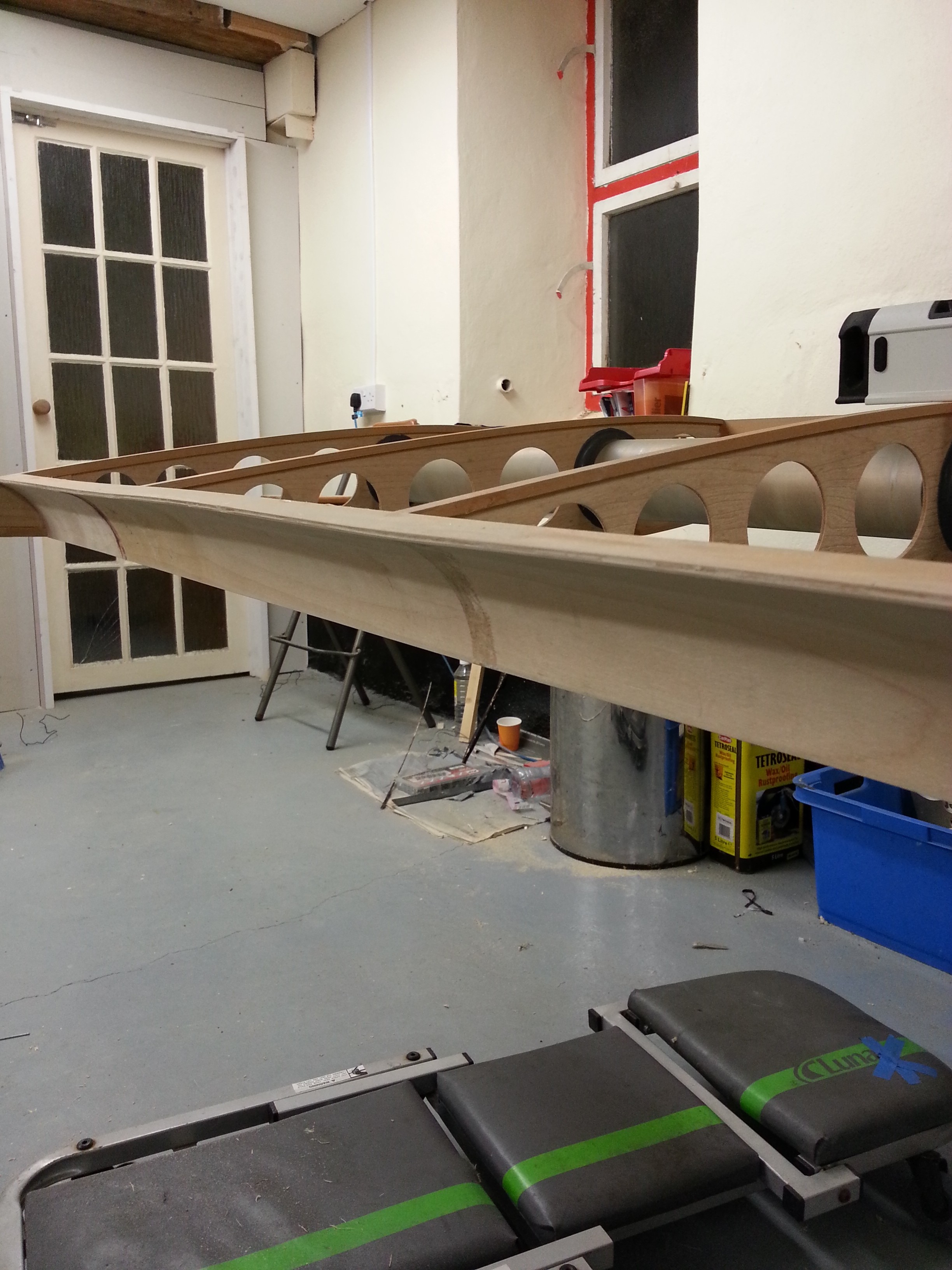 Leading edge is formed from slightly stiffer 1.2mm plywood. Years ago, when I used to build the odd model ‘plane here and there we used to pre soak ply to ease the bending so asked Kevin Crumplin on this when I saw him in Henstridge just before Christmas. Absolutely was the reply ! – a pond or bath would do !