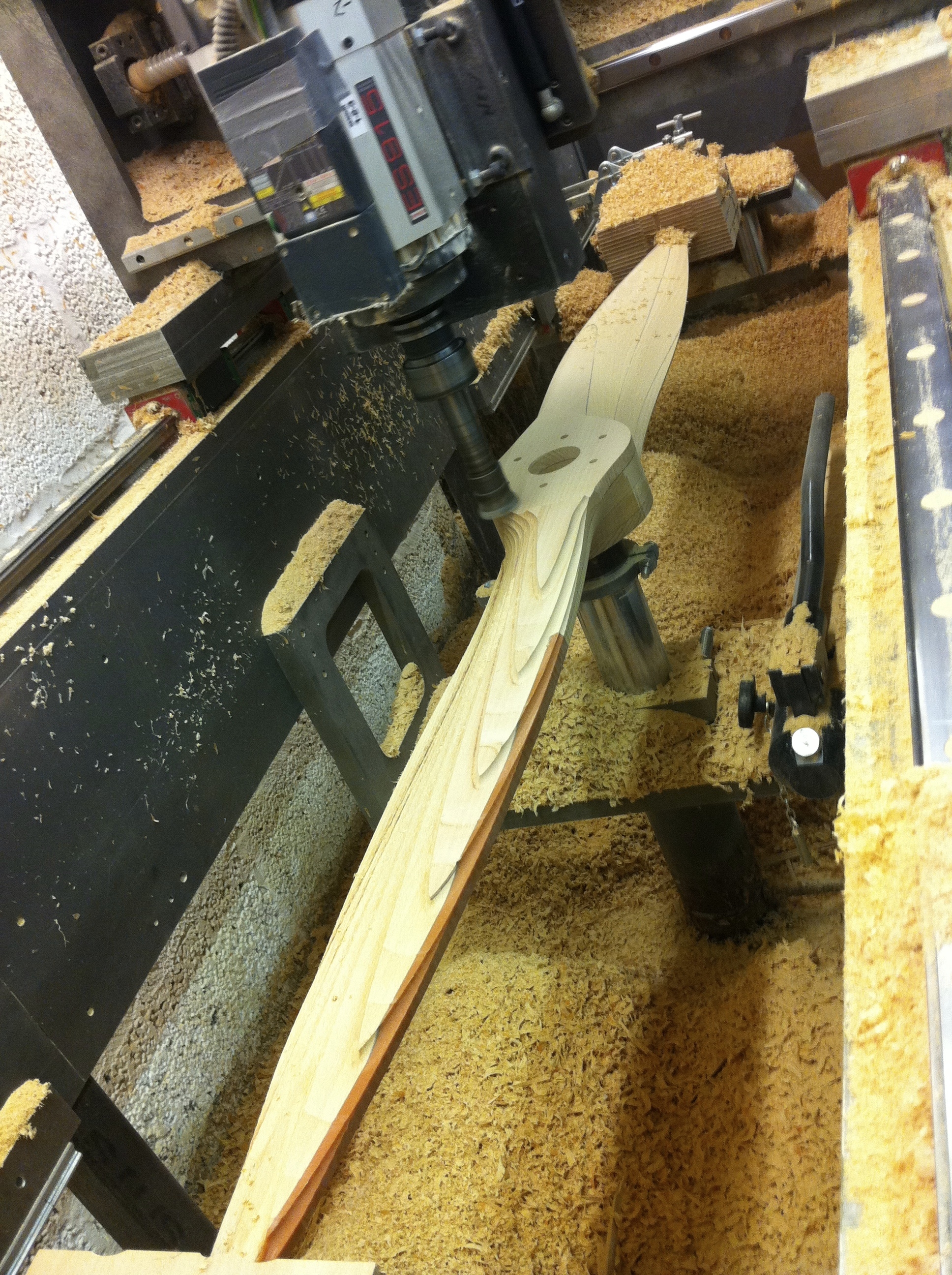 I made up a small jig to hold the now very wet and partly formed leading edge in position for 48 hours to let it throughly dry … the small strip inside the foot of the jig is to push what effectively will be the leading edge in to form a tighter curve … this took a few goes to get the jig right to effectively ‘over bend’ the curve … this means when it’s dried you get a springy BUT grippy leading edge .. which makes subsequent clamping whilst glueing a very easy affair