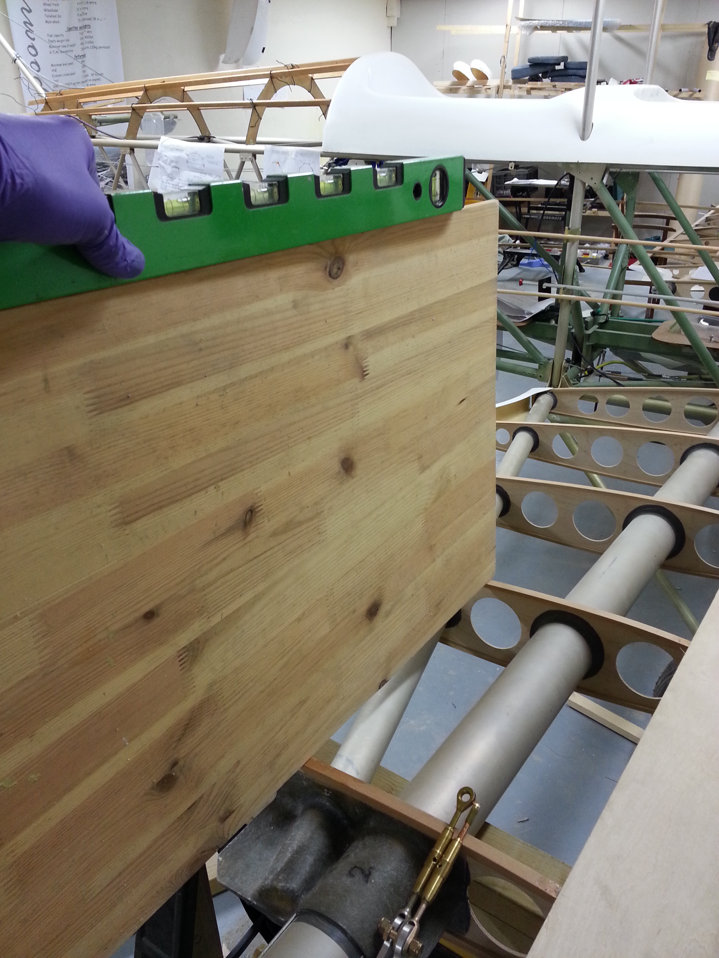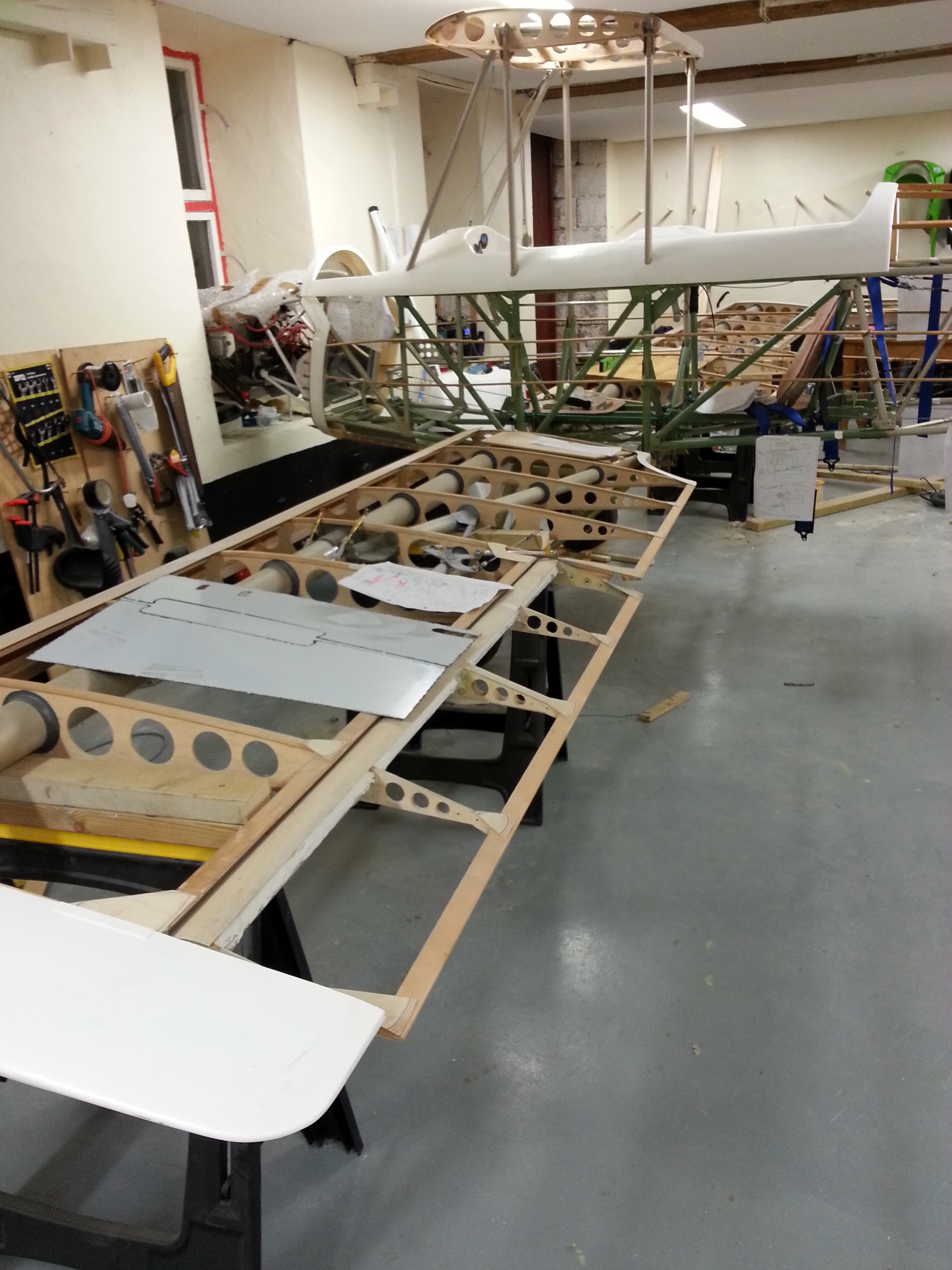 The trusty old trestles now have to be re-jigged and set to take the weight of not only the bottom wings but the interplane struts and then the top wing in preparation for the rigging.