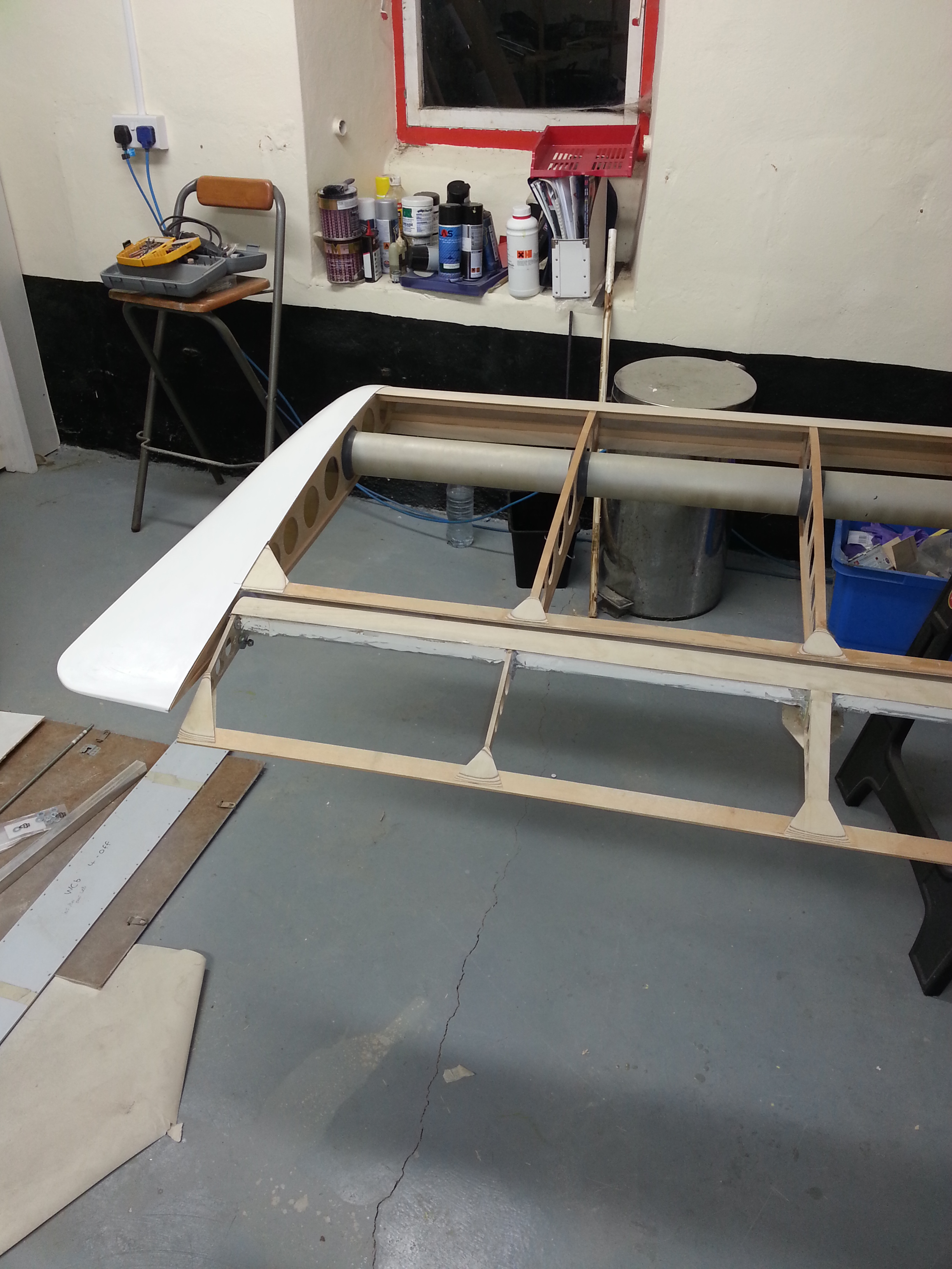 The main wing trestles (two each side) have been really useful whilst working on the wings but now need beefing up as well as packing up to take up the gap now in place with the 3 degree dihedral.