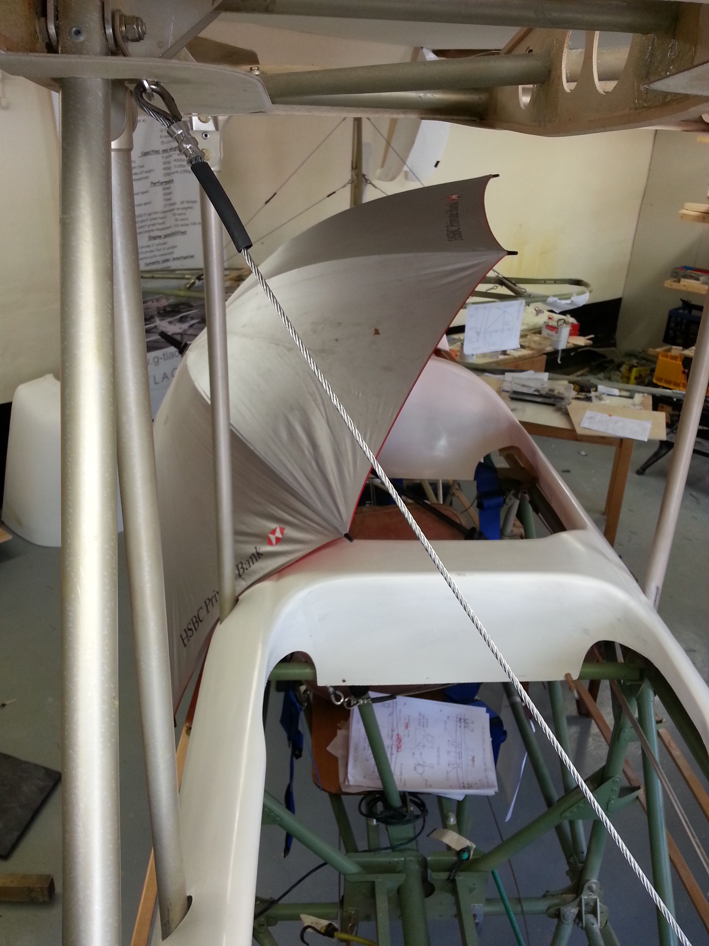 The first thing was to level the fuselage fore and aft and laterally. This took some doing as an old barn is hardly likely to be level. Having opted to not remove the engine – the aircraft is trestle at the rear and has a large painted breeze block tied securely in to stop her tipping on the nose. That gets fore and aft sorted. The lateral was a little trickier and took some packing under the starboard wheel to settle her nice and level.