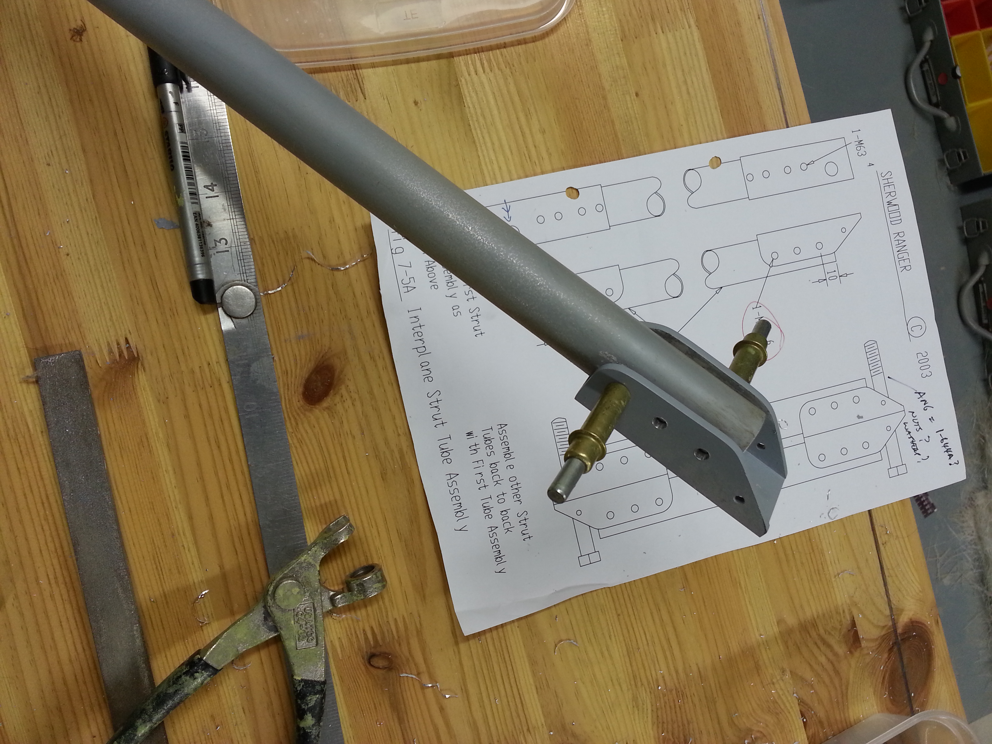 The plan guidance advises locating the supports very close to the point at which the strut supports locate – a busy area on the wing as this is where the aileron bellcrank is.