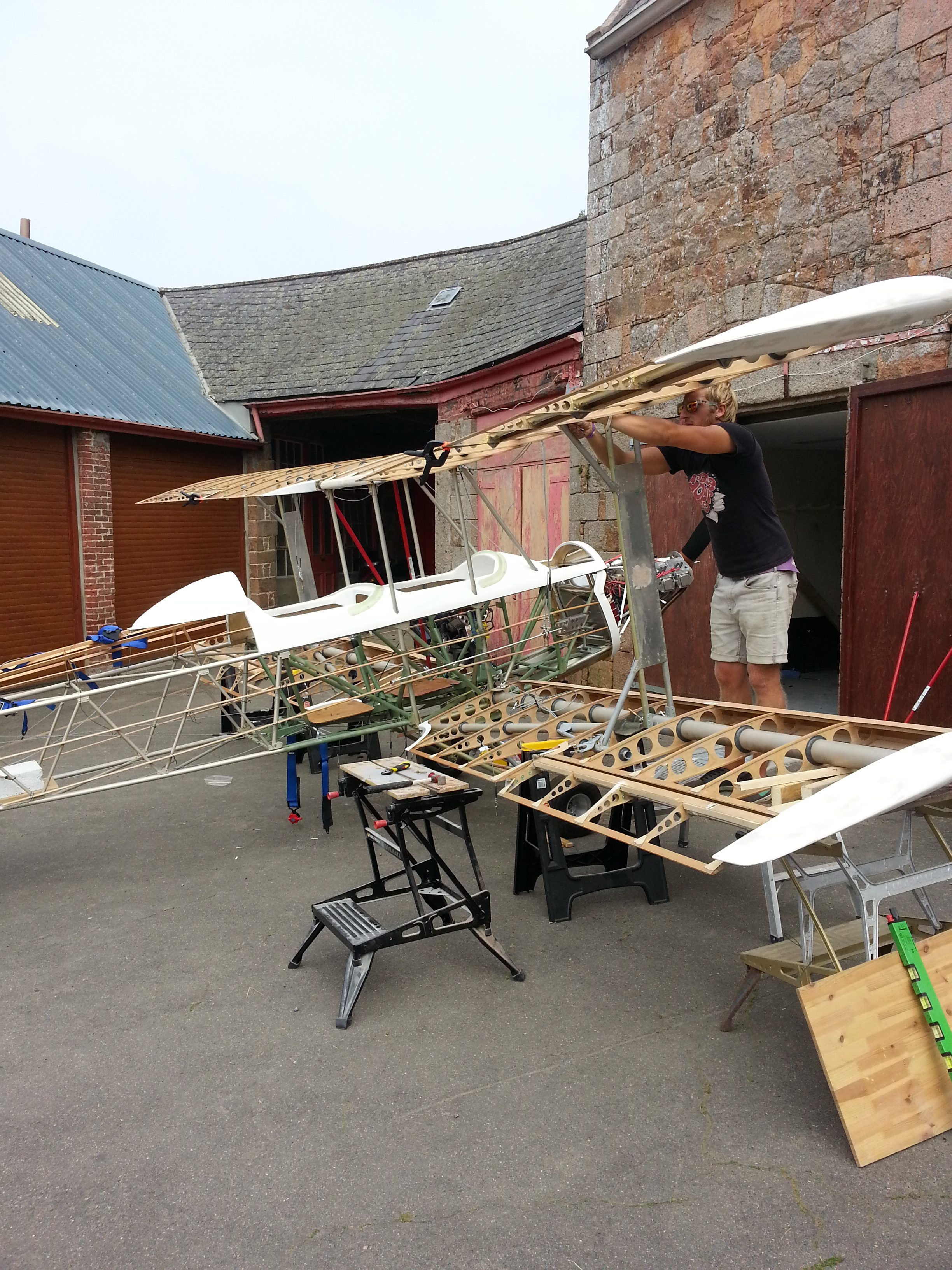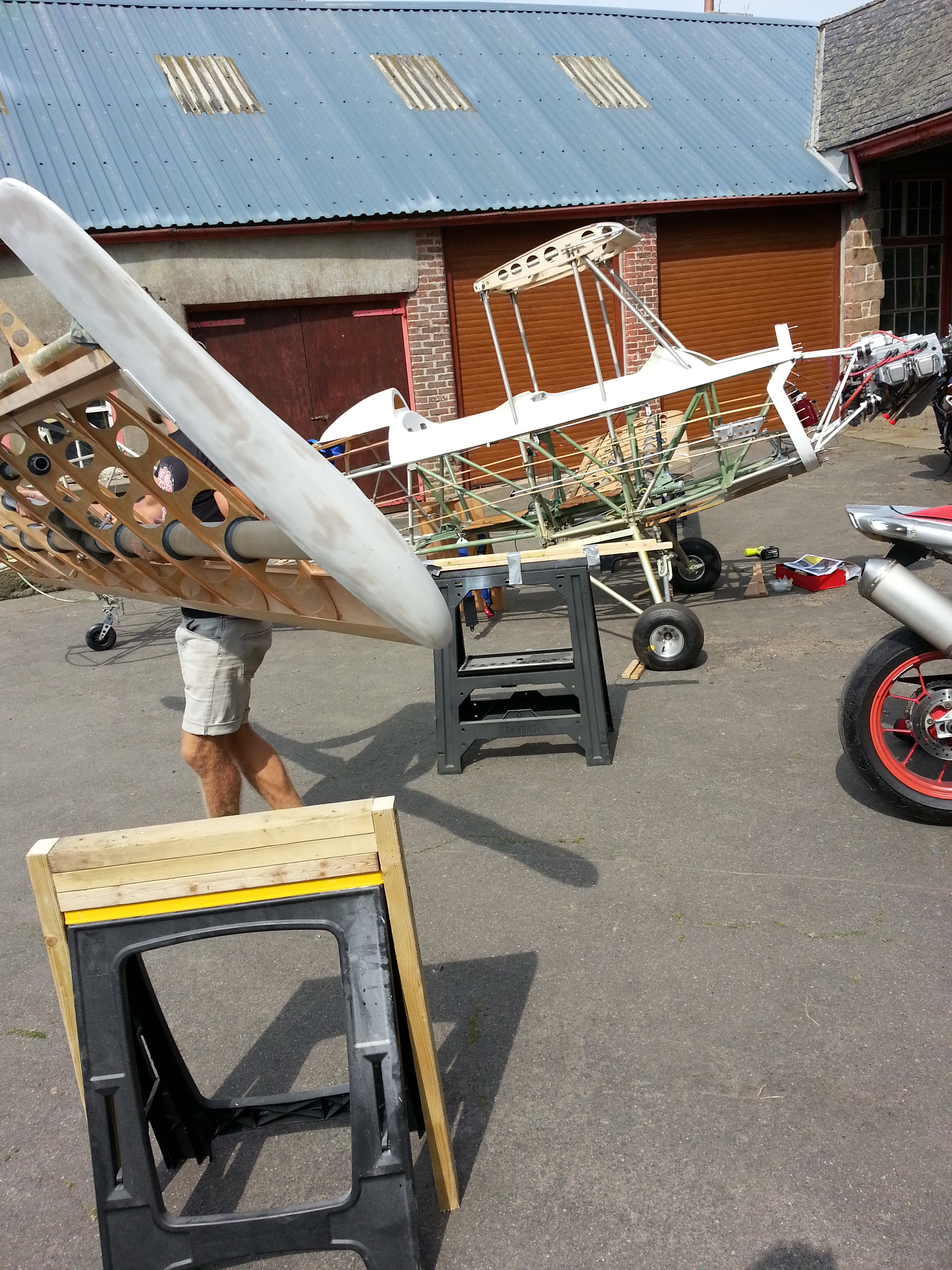 Big very hot Sunday this weekend. All the wings were in the old barn on trestles having been coated with polyurethane and all the fittings marked and stored up.