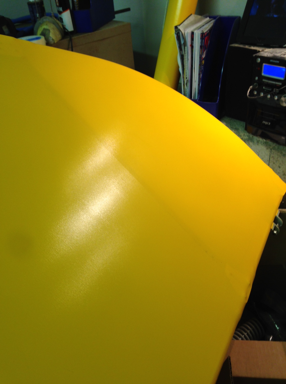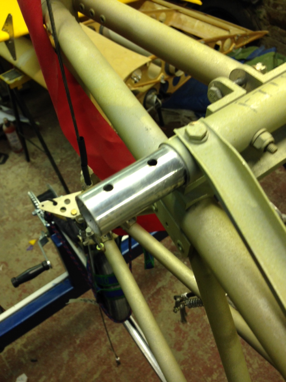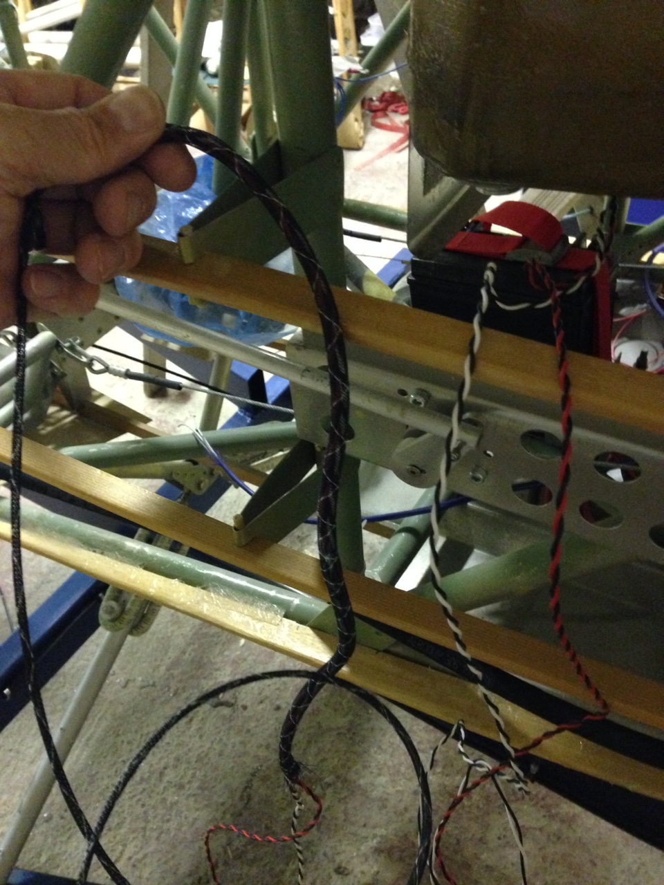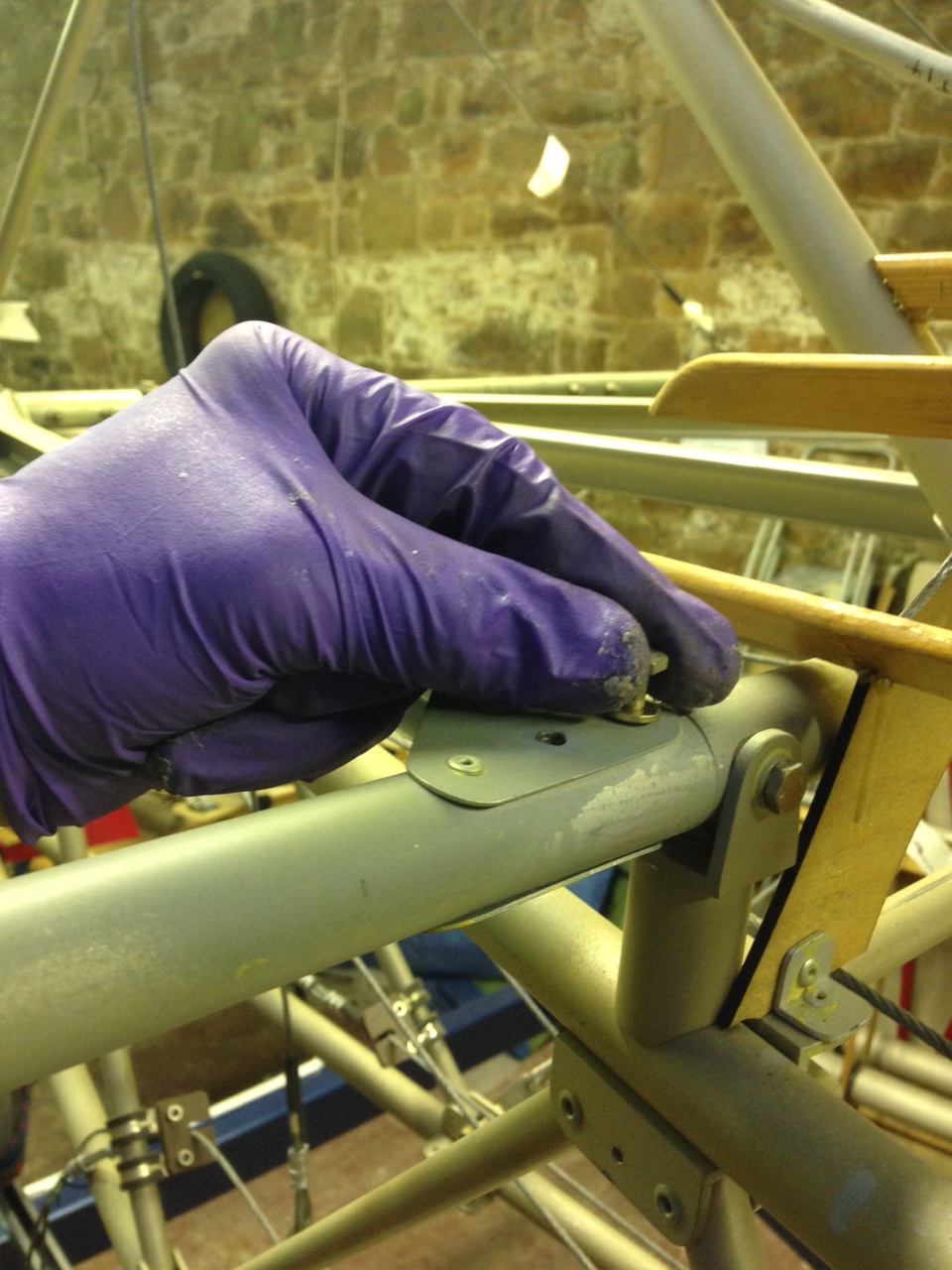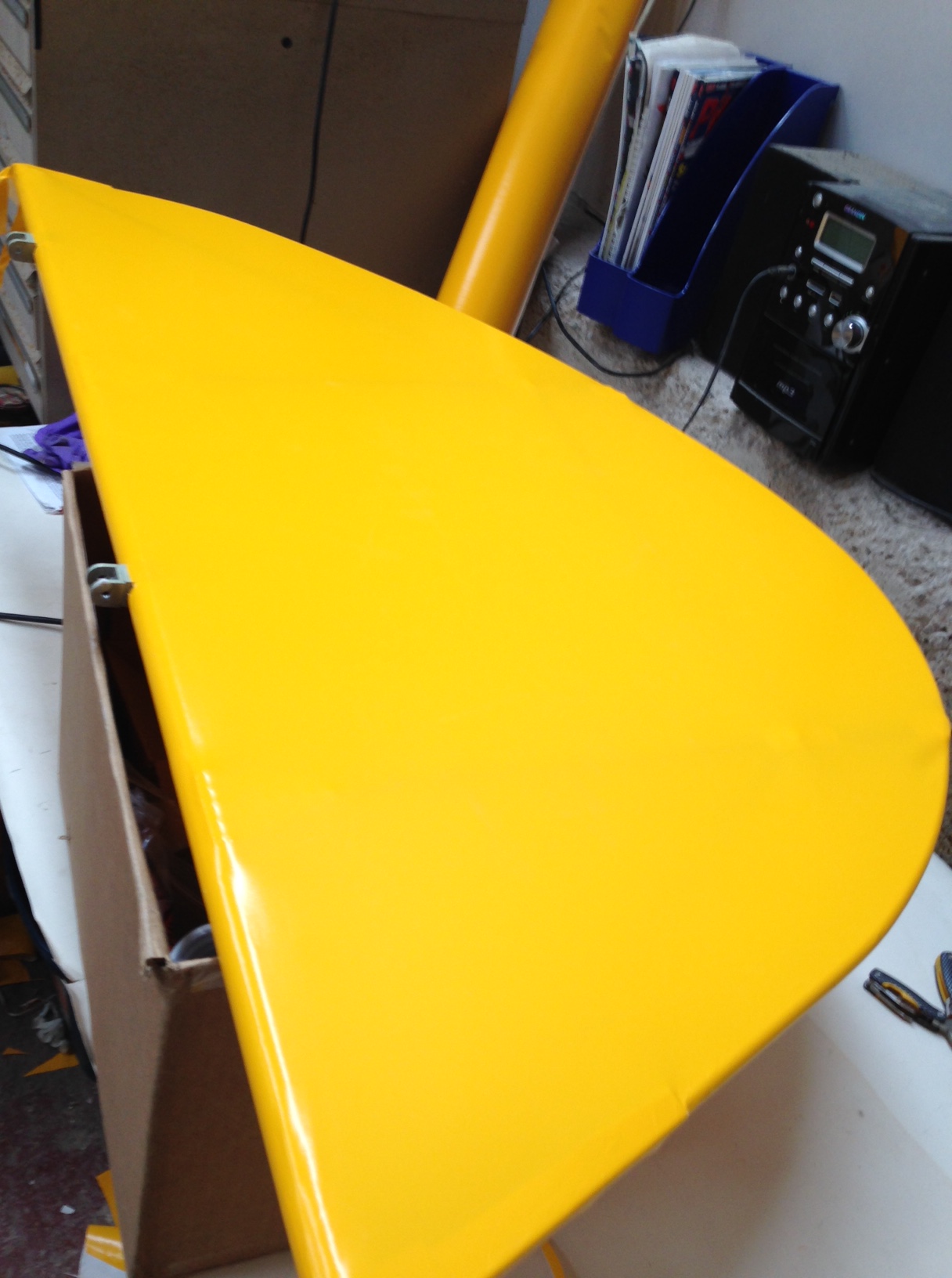 So I took the big 1.8m roll of Oratex out of its protective covering and unrolled it over the prepared underside of the Top Port wing. Trimmed to length and let it hang out over the sides. You then need to set an alignment level on the leading edge .. following PHS expert advice 🙂