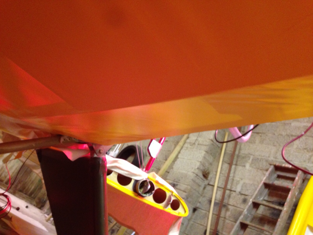 As I don’t have the facility to hoist the entire body skywards and work on covering I have opted for what PHS (Paul) mentioned was the ‘keep fit’ option ! ie forget gym memberships and riding pushbikes …just nip under and over, nose to tail, under the wings etc to measure and trim the material for covering the full body underside … Then use temporary clamps to hold it in place so that I can get pencil marks for the glue line.