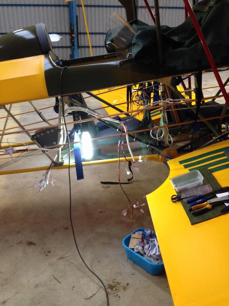 Trig Radio and Transponder bits going in … Cut dash to accept both heads and fitted the base behind the pilot seat. Cable routed around body struts and now removing the pre tinned bits I did as Adrian advised me that the crimper will expect to crush onto cables NOT tinned .. Which might prevent proper crimping !
