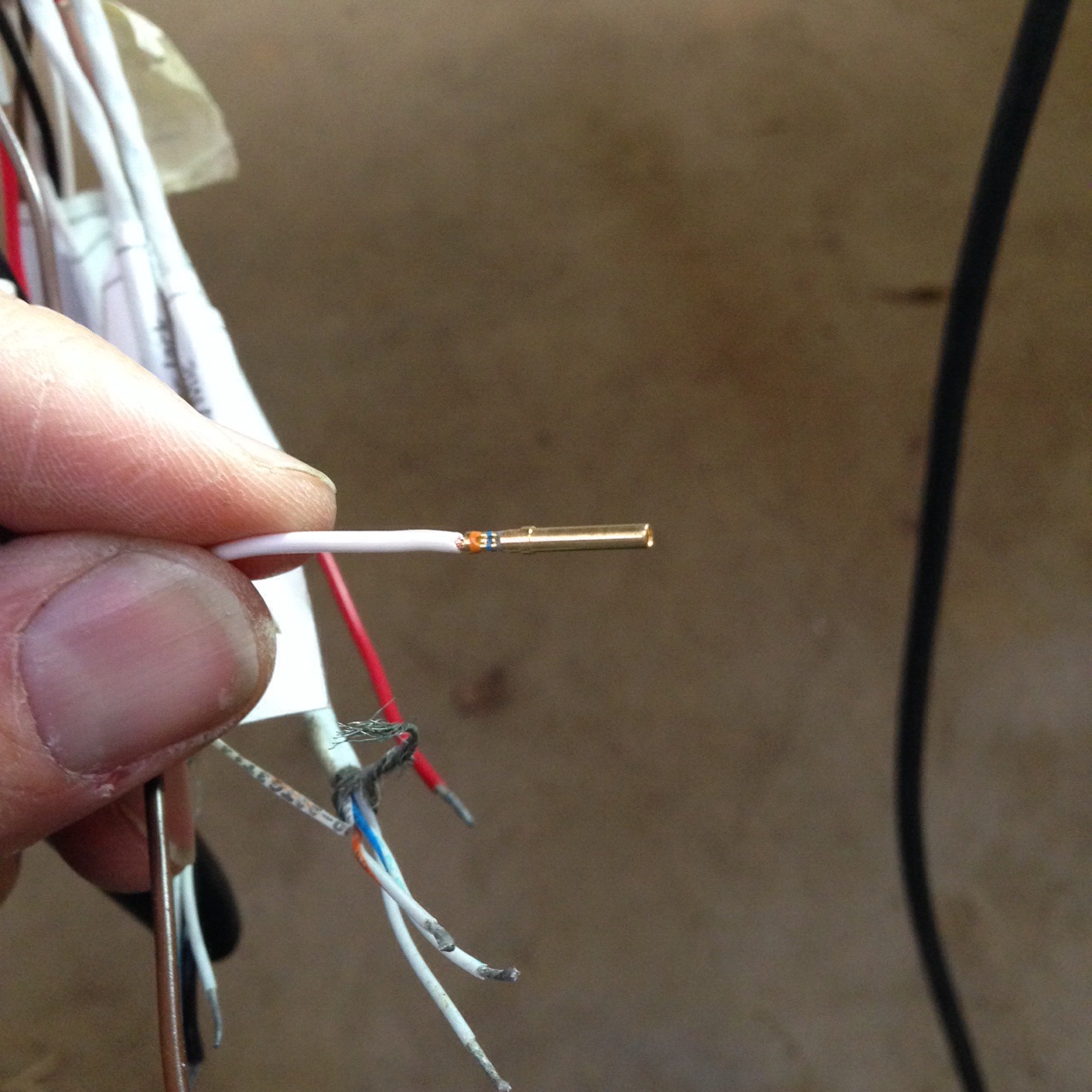 Manual in hand and pins and crimper at the ready .. Adrian also advised to butt the outer cable close to the end of the pin