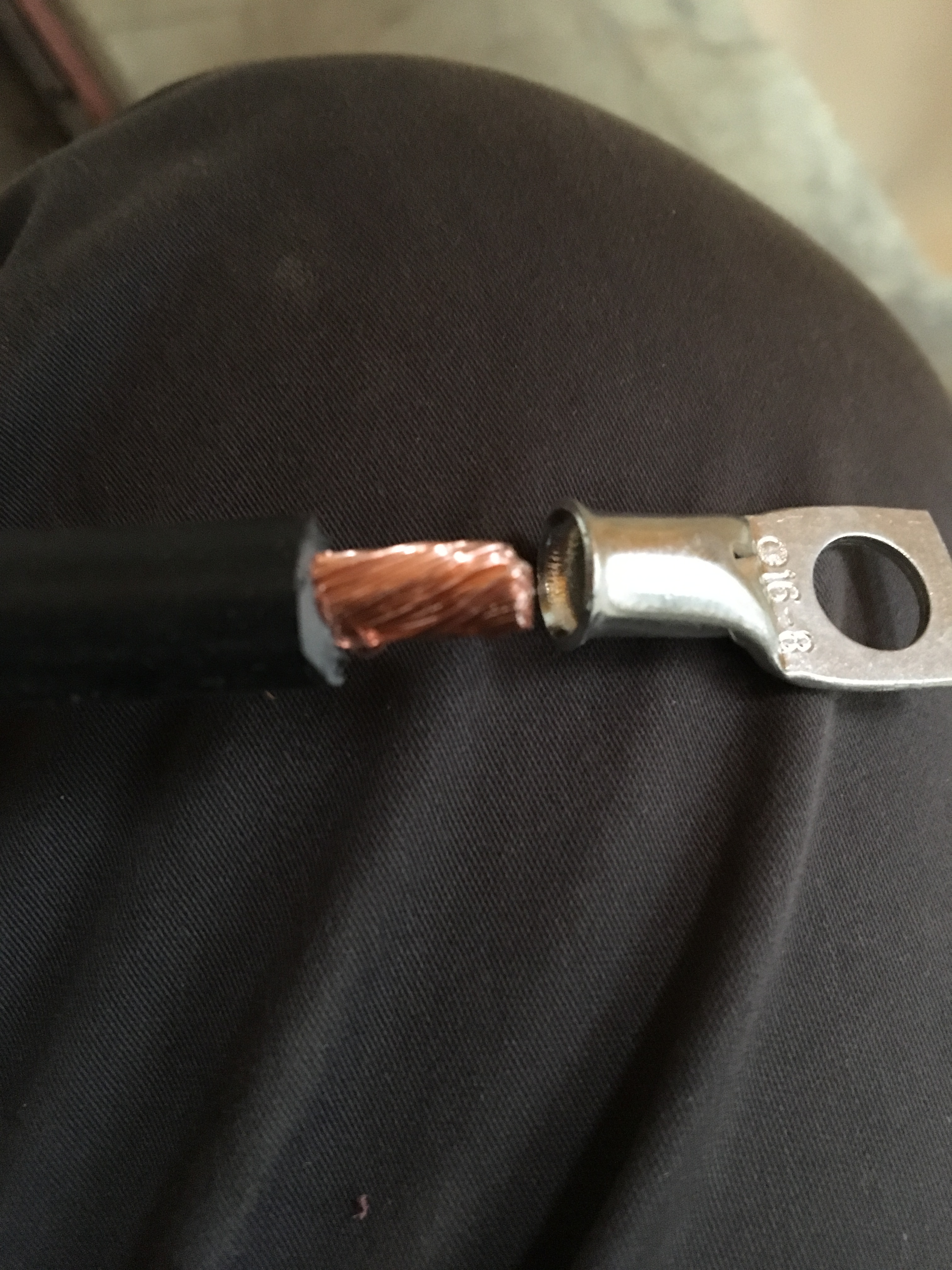Pick the correct size crimp for the ring connector (16)