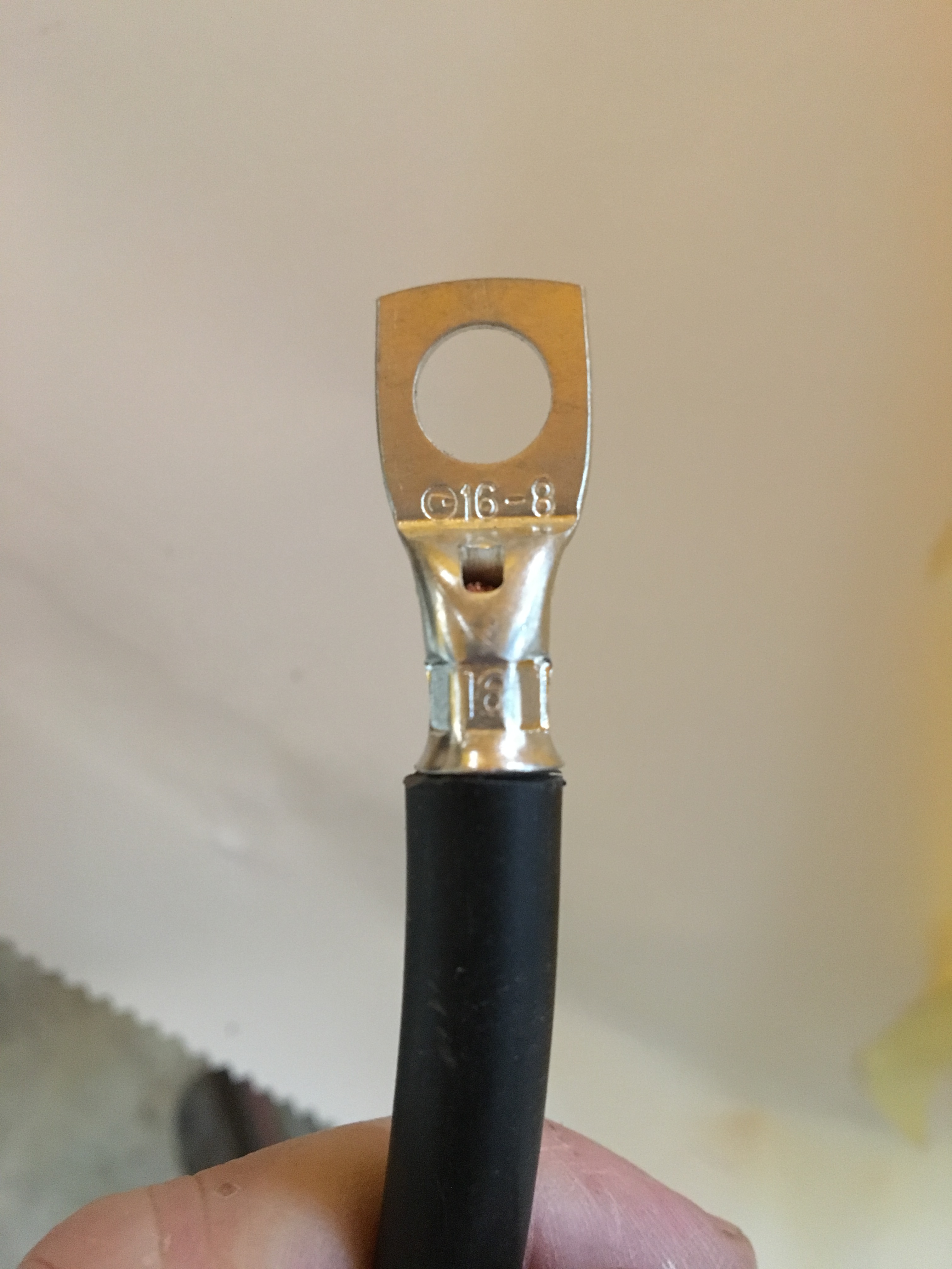 Neat auto stamping of the crimp size confirms we used the correct connector for the 16 size crimp .. what a clever feature