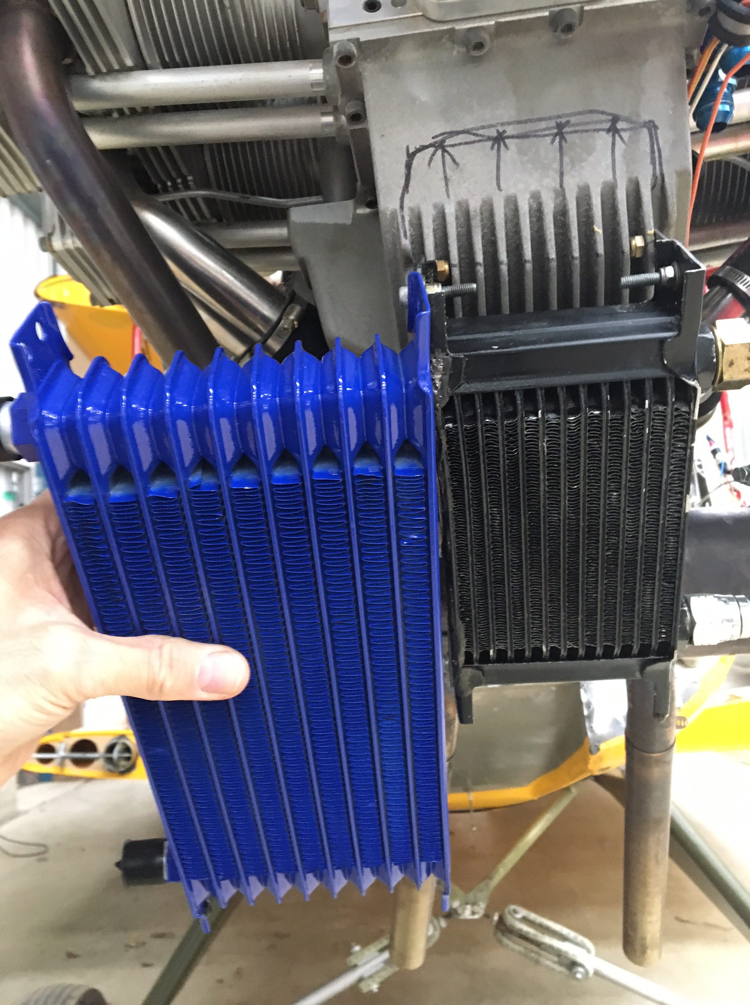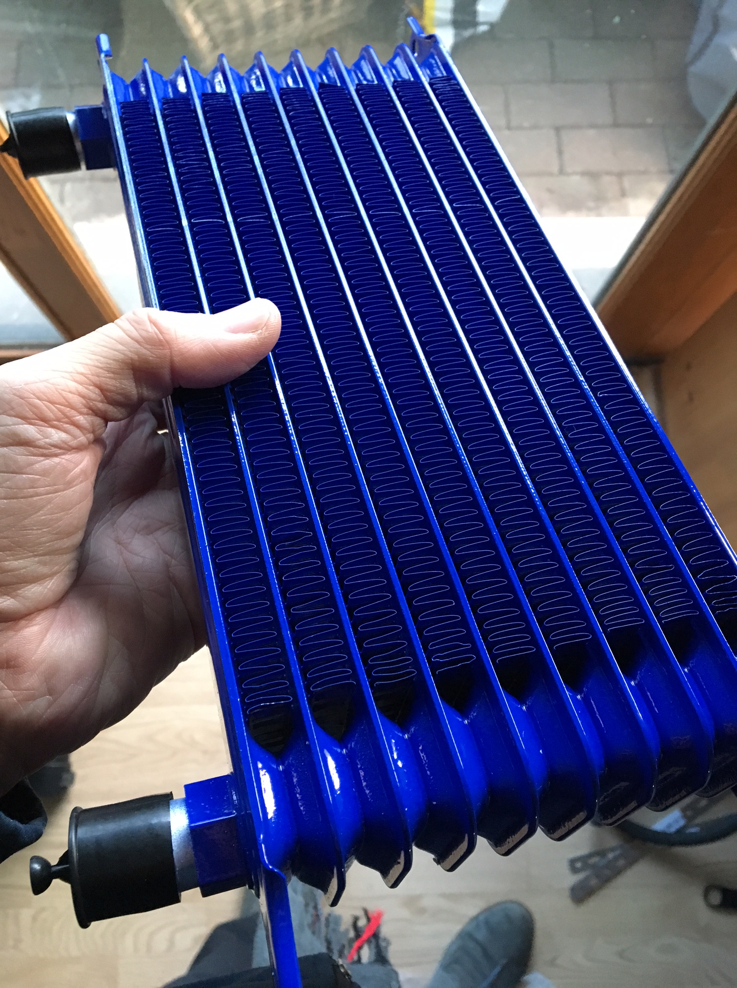 Looks like the cooler i’m using is hopelessly undersized ! – Now I’ve thought back and this didn’t get delivered with the engine … I remember simply measuring the gap of where I planned to locate it .. ie the scoop under the belly and then buying one to fit. Not very scientific but I’m not sure I have seen a spec for a ‘standard’ size in the Jab manual.