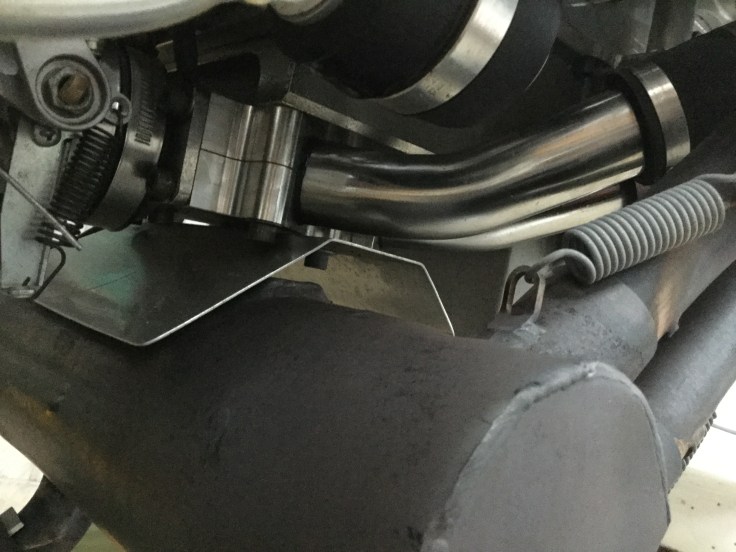 The initial bit is to connect the oil feeder pipe to the back of the beautifully blue anodised T bar on the bulkhead. I’ve gone for the smoke model that has 2 (atomiser) spray heads .. one for each exhaust. Smokin Airplanes specify a specific distance from the exhaust tail pipe for these to be mounted (10” from tail exit I seem to remember)