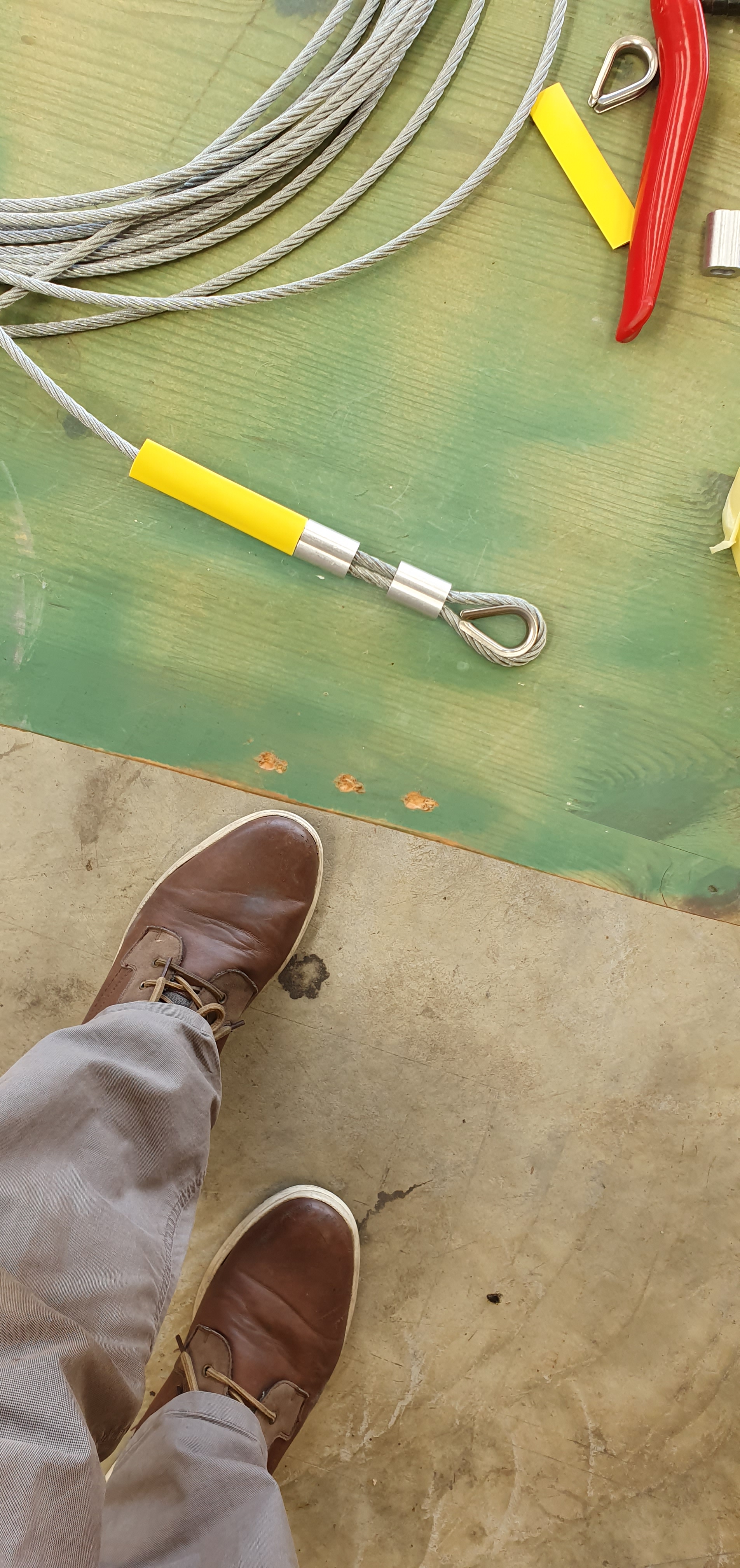 Crimping done and making sure everything is threaded onto the cable in sequence … guess who ran out of black large heat shrink !