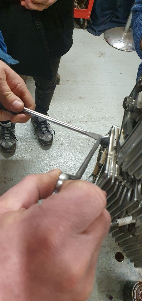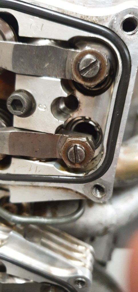 We also got shown where d bolts are for tightening down to 24flbs but set to 23 to be on the safe side with us … also noted where the small grub screw is that reveals the 5th head bolt for tightening … this could be where I have a small smear .. to be checked