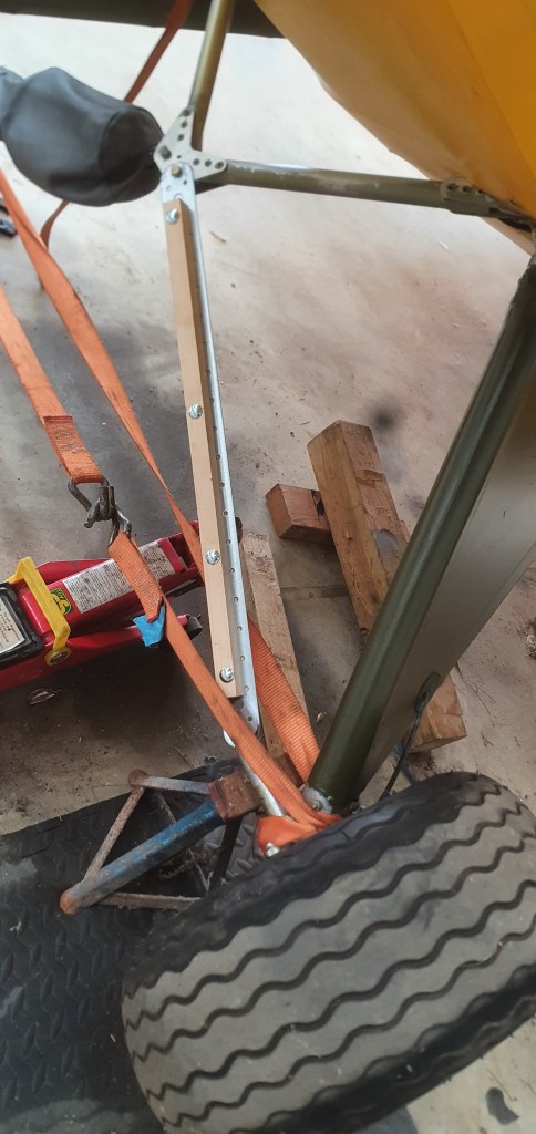 I created a temporary splint as I didn’t trust leaving the aircraft on a jack and axle stand EVEN with a ratchet strap between the two wheels