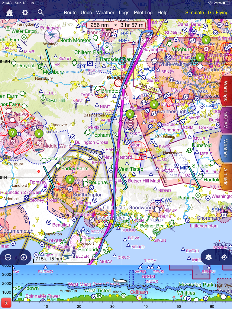 After filling and packing away the immersion suit I felt somewhat lighter ! It was time to pre check the approach details for Booker .. fold the paper neatly under my crutch so it didn’t blow away and then up and away routing around Portsmouth …