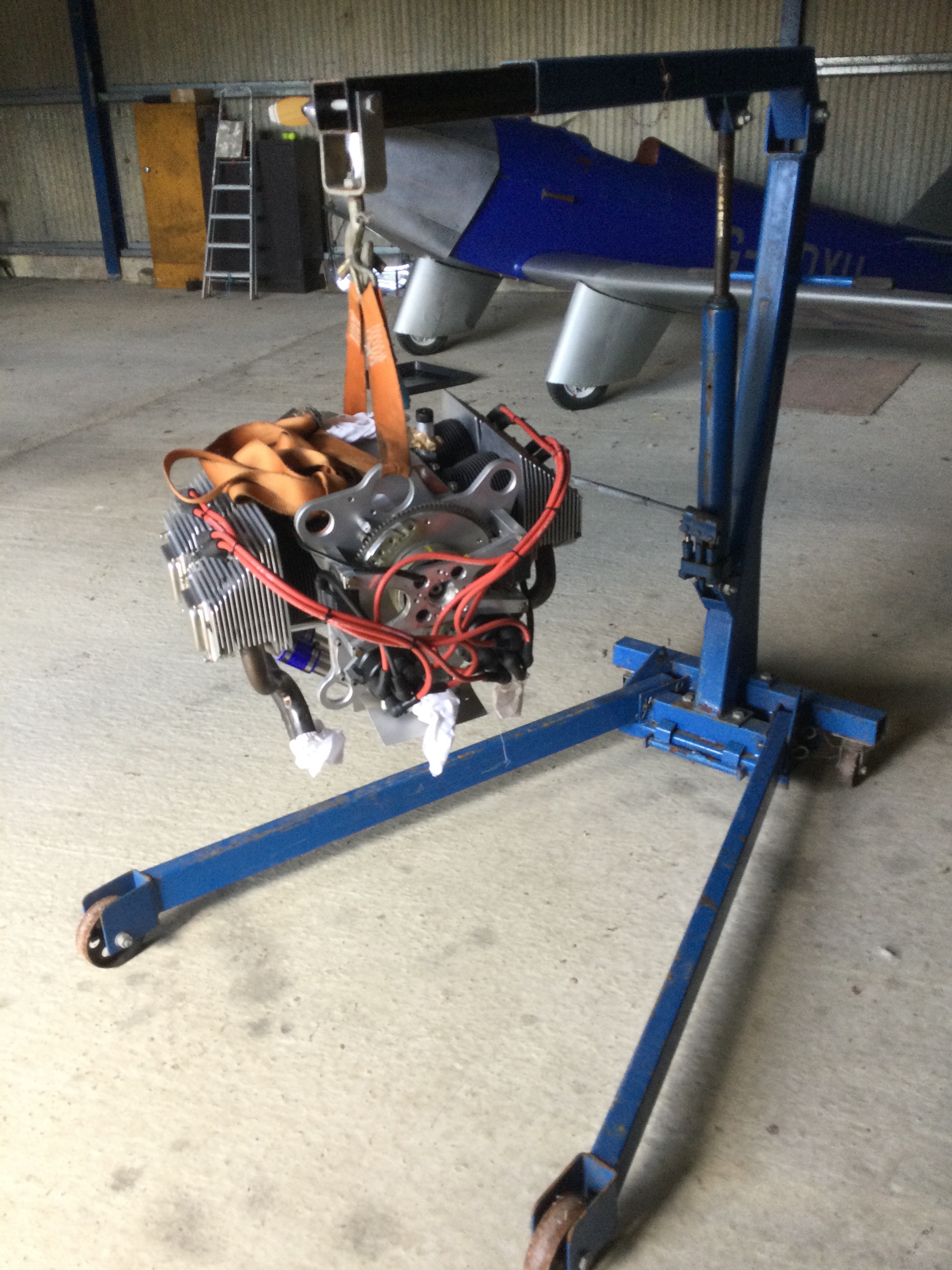 To validate this we needed to get the weight off the undercarriage so, within minutes he was up a ladder, we had moved the aircraft to position it under a main hanger beam. A strop was erected and we had the aircraft floating just above ground level.