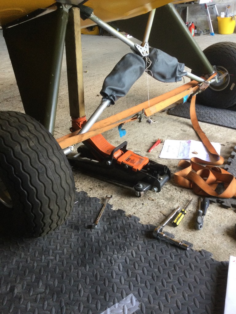 We slackened the main u/c pins and then strapped the Left and Right wheel .. so it wouldn’t splay on release, then removed the centre V brace.