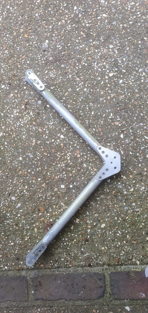 Whatever .. it’s been spotted … it’s a relatively easy reconstruct and replace with new parts … 2 brace arms, 2 cross plates, 4 mounting arms .. 4 saddle clamps and a set of nickel rivets