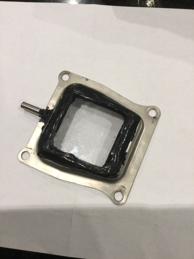 To confirm all this I’ve now got use of a converted rocker box head … that has had the centre cut out and a glass inspection panel sealed in place. This will allow us to run up to speed and eyeball exactly what is happening