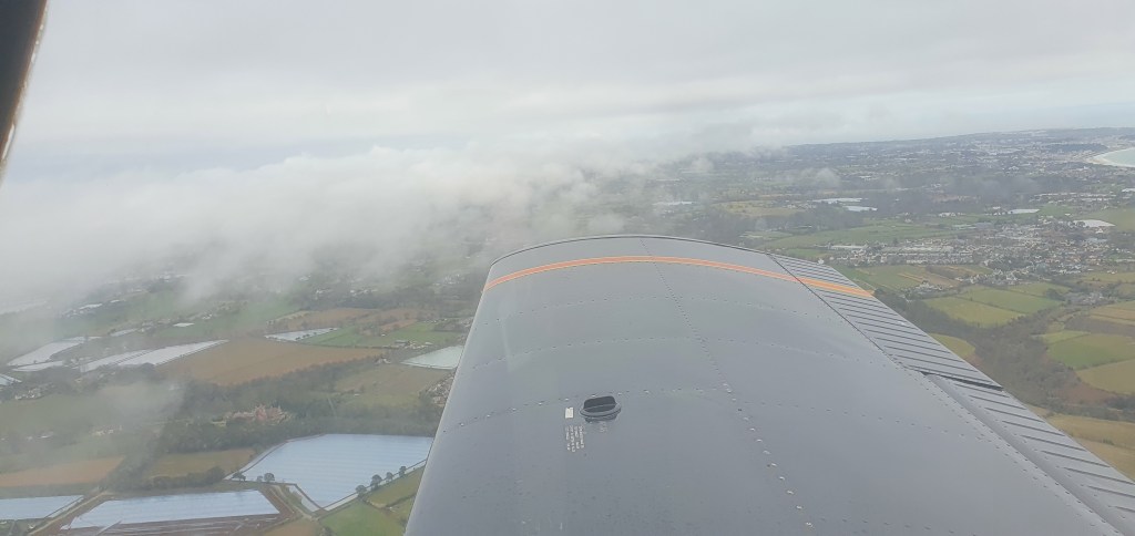 At 1400 there was a sudden small break in the clag .. so I started up and got to the threshold and was a finger from transmitting ready for departure … when a Citation came in and said 7 mile final .. he was given clear land …and ..with a stiff headwind took ages to get in …and in those minutes …the MET went BKN at 300 …Sat at the threshold engine on tickover and watched successive 300, 400, 300 foot bases drift through