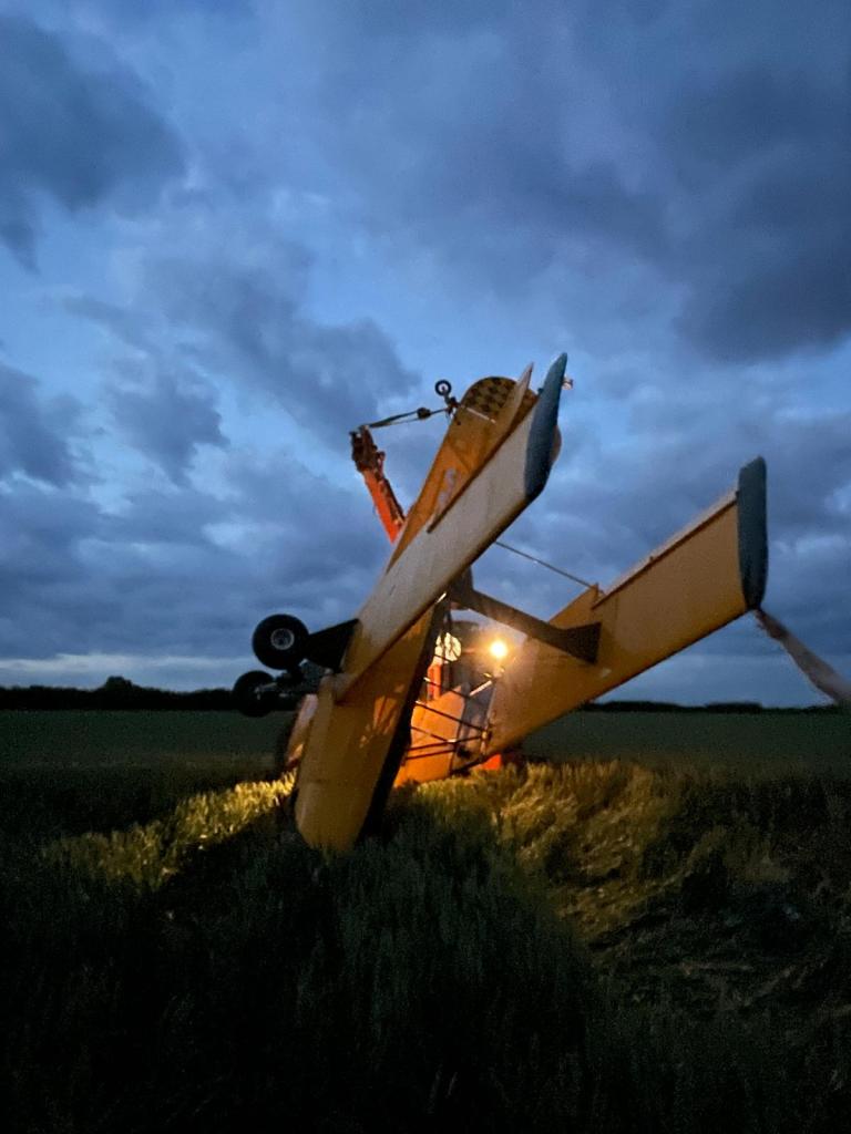 Once upright .. she was easier to move on her main wheels and we extrictaed from the field .. the crop lying down as the wheels went over and springing back up as we passed … so just leaving a ‘plane shaped hole in the middle of the field when we moved her.
