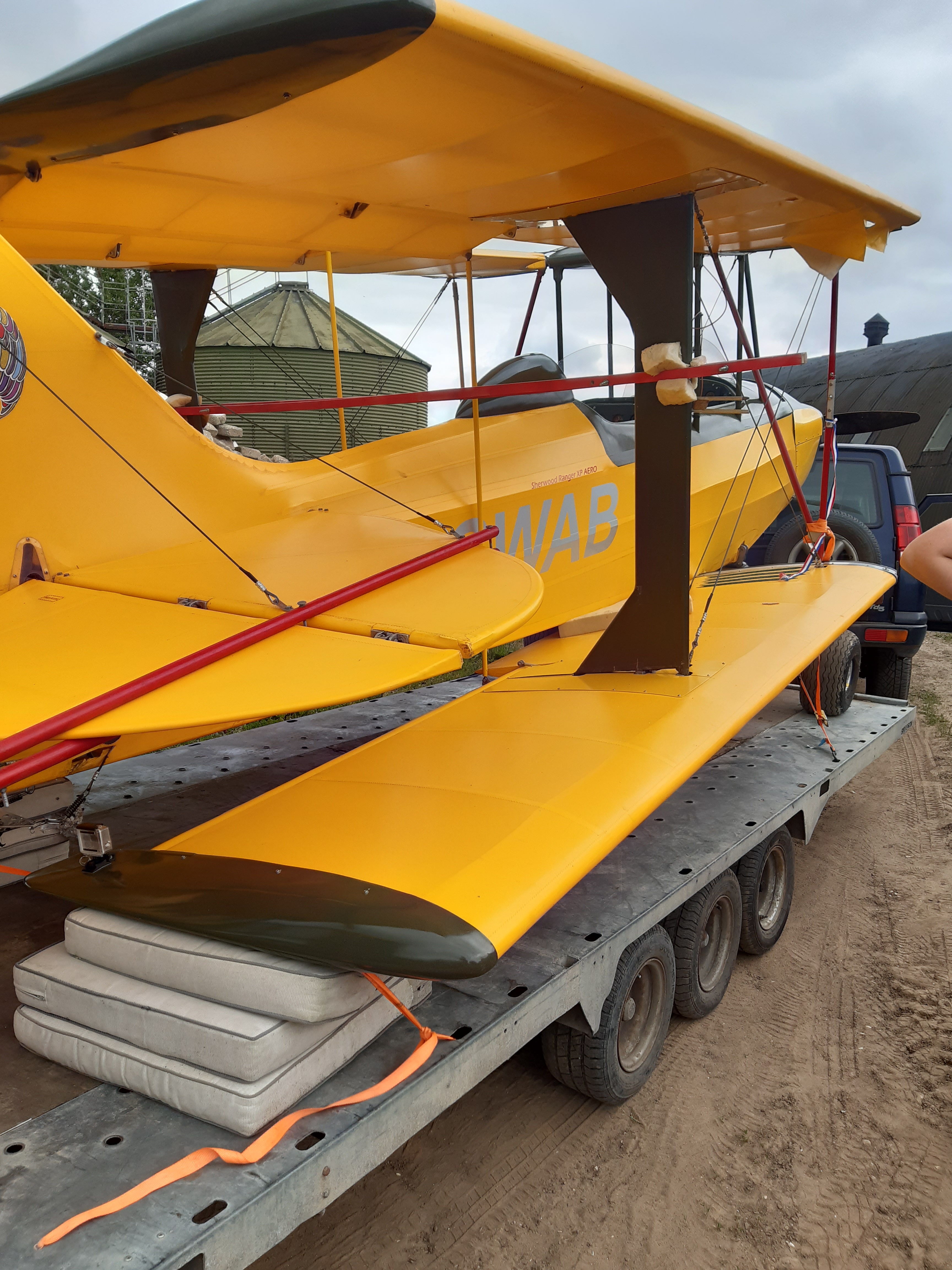 With the excellent assistance of a family from Priory Farm Aviators .. we collectively decided to strop the tailwheel and lift her vertically with a hoist the farmer kindly provided.