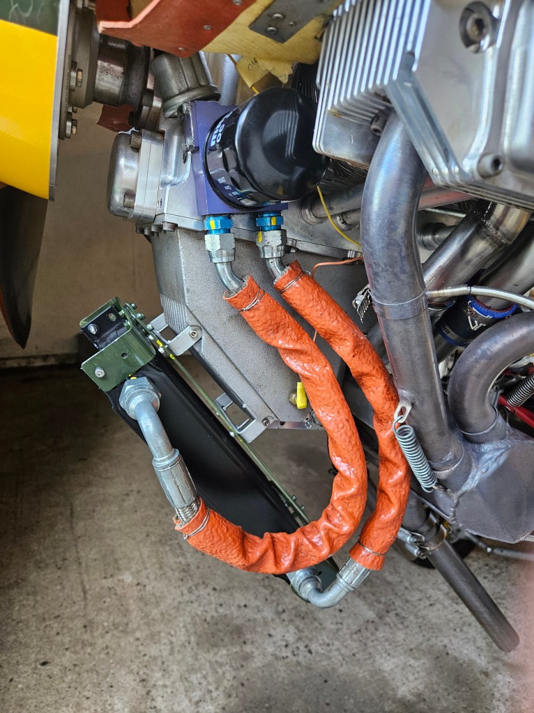 This time on landing i killed the mags quickly on parking and undid straps and jumped out to check the oil feed pipes into the cooler matrix .. both pretty cold !