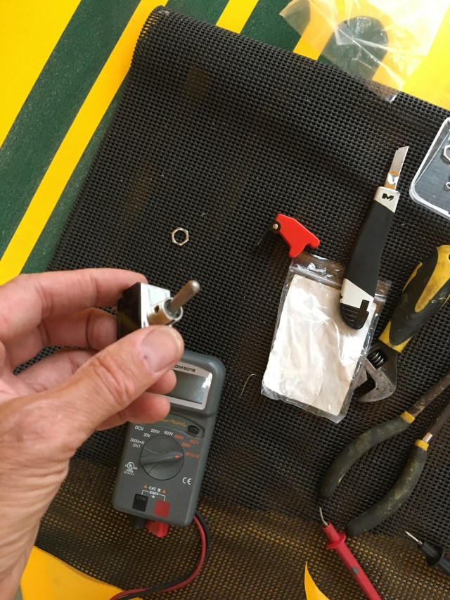 I had ordered a nice new quality switch from LAS and, last Sunday, when it was F7 forecast and generally rubbish outside set about removing the old one .. investigating it and it’s connections and putting the new one in place , re using the red cover flap.