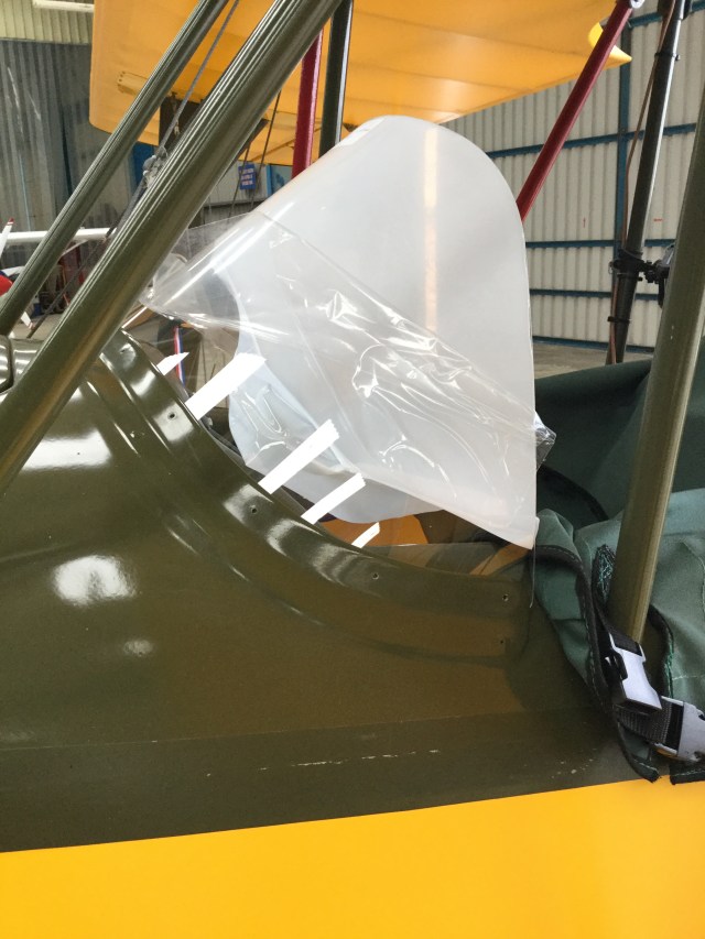 On shutdown and exit all was going well with the standard Sherwood exit manoeuvre when I advised on the supporting your body weight as you ease ‘up and out’ at which point there was a slight involuntary move of the head forwards .. dead centre of the small wrap around front screen … CRACK … split about 8” down the middle ;((