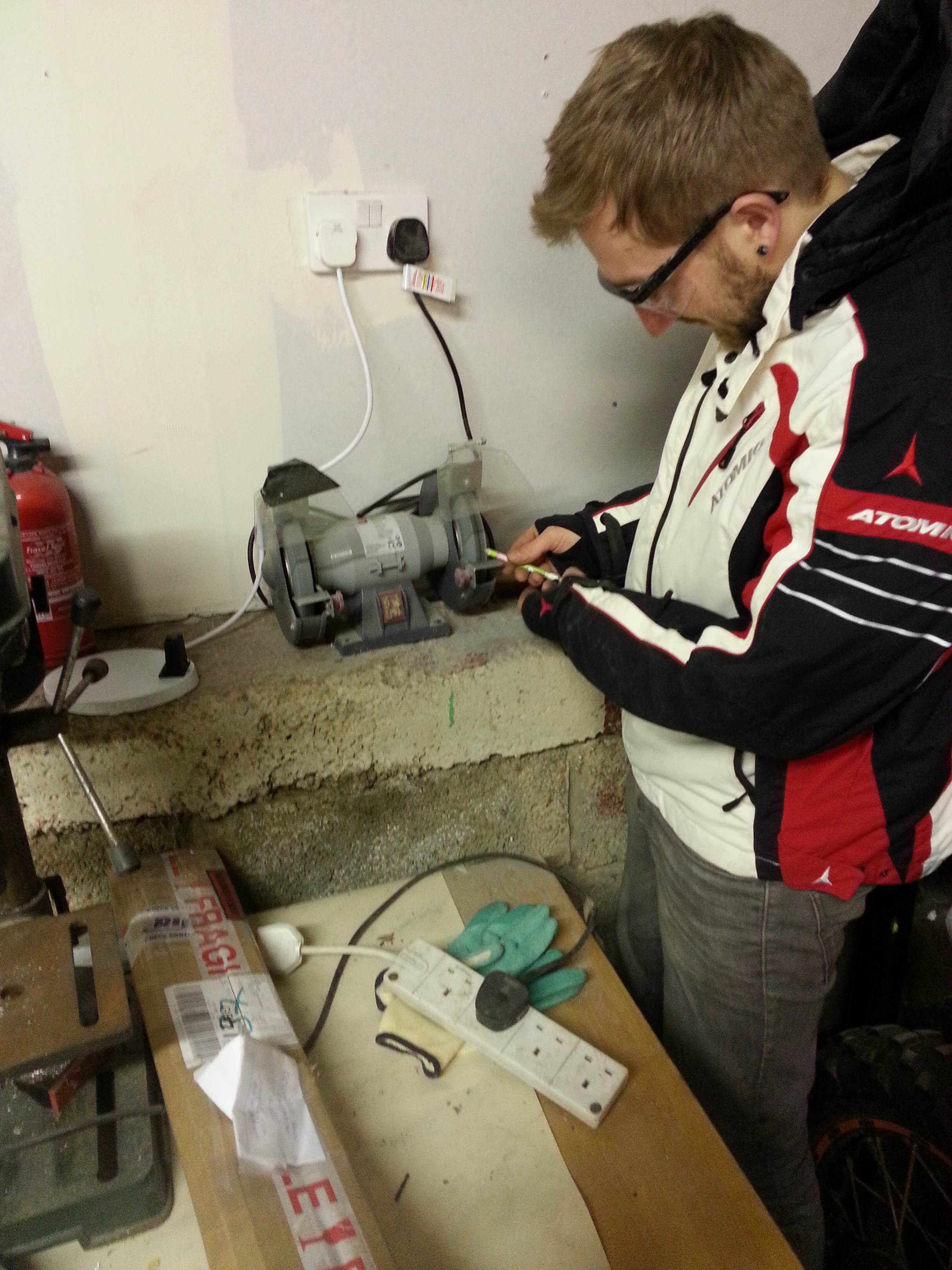 Sam also found I had a two wheel grinder in the back of the workshop and was blown away by this ‘new toy’ … giggles and whoops of delight at this ‘..awesome tool …’ … he even managed to use it to sharpen my pencils AND make a moulded left handed pencil with smooth indents !! Kids eh …